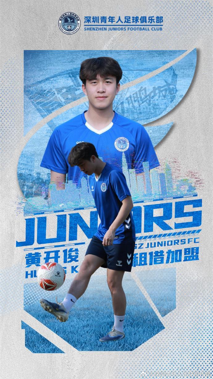 1月26日,深圳青年人足球俱乐部官宣,湖北青年星小将黄开俊租借加盟深圳青年人。